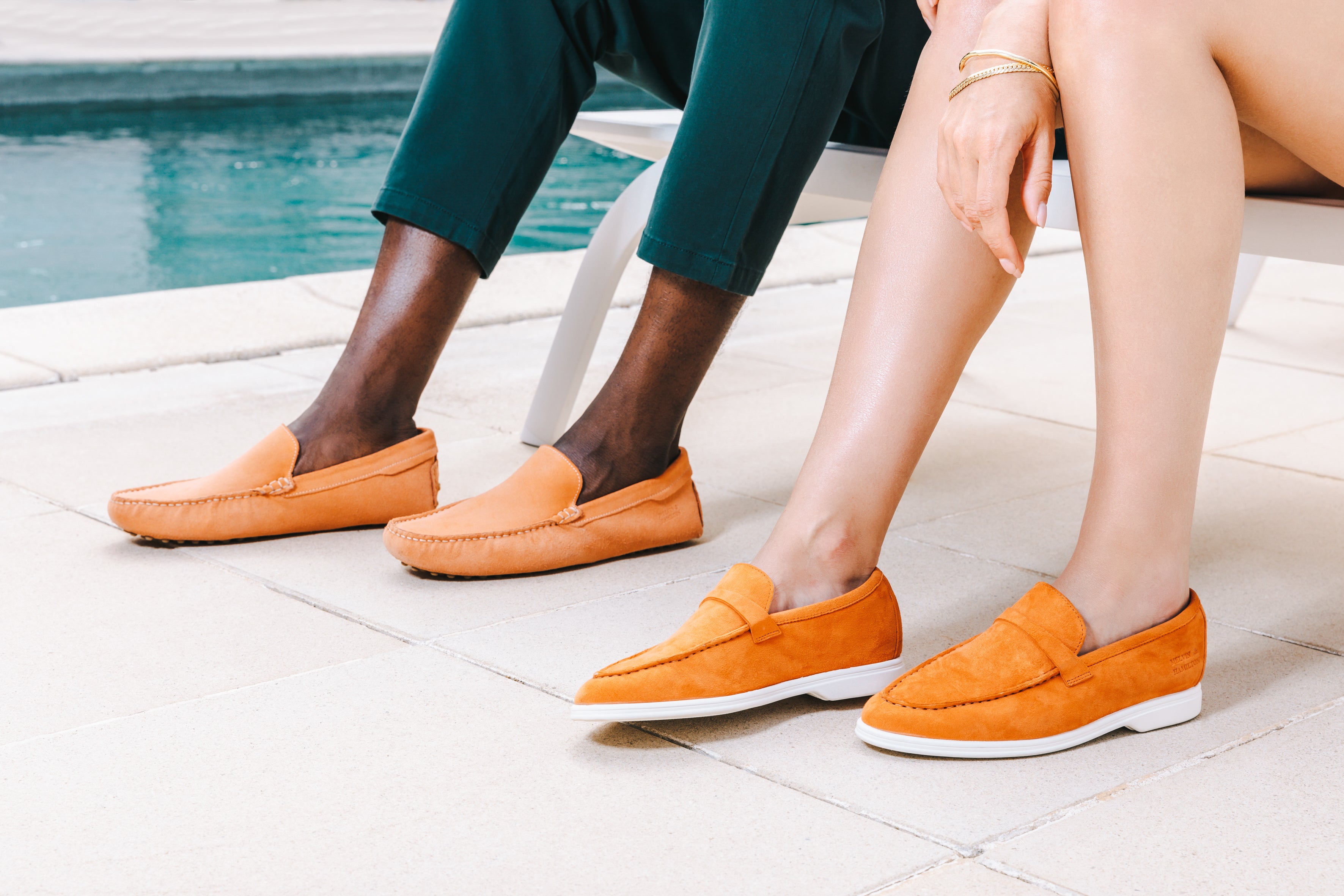 Chez les hommes, les cuirs suédé, perforé ou classique des modèles mocassins Jim et derbies apporteront un style pointu et coloré à vos tenues de l’été au bord de l’eau.