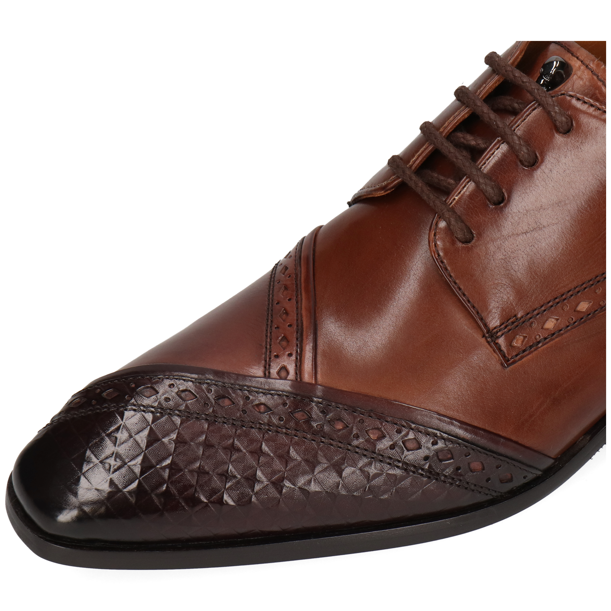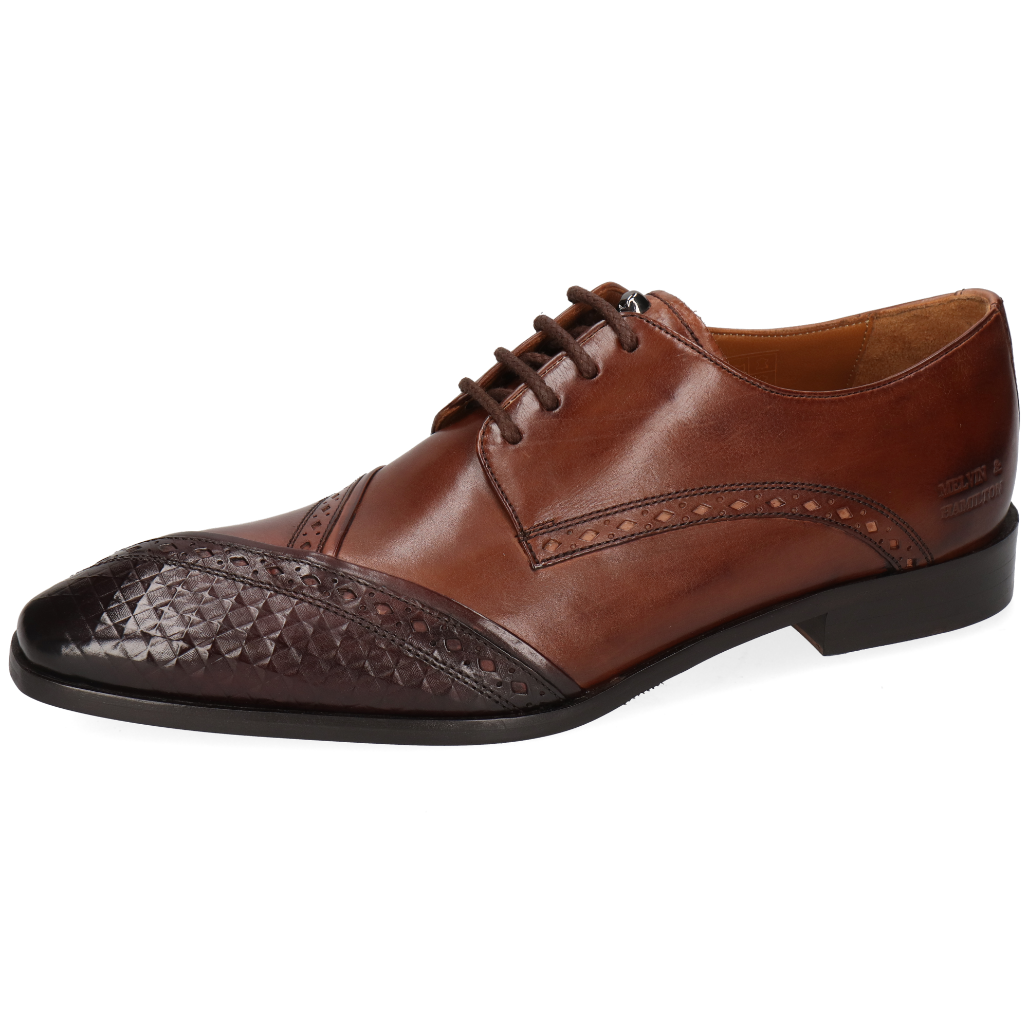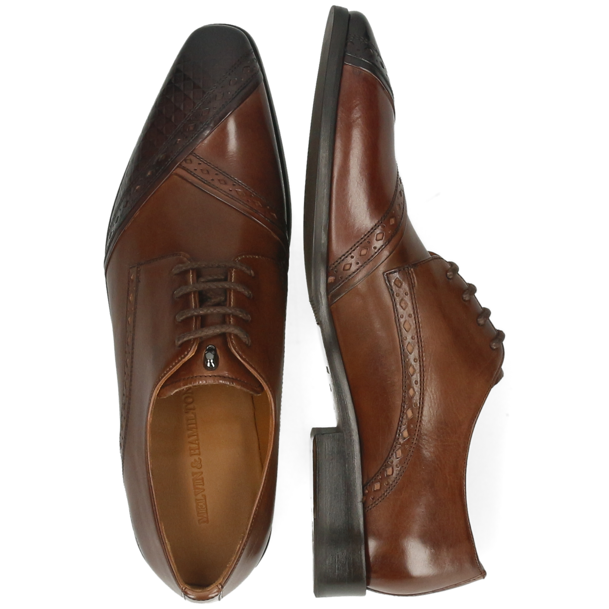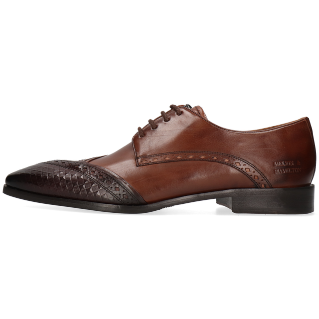 Cuir lisse : essuyez avec un chiffon humide puis laissez sécher. Appliquez une petite quantité de crème nourrissante pour hydrater et nettoyer le cuir ; une fois absorbée, utilisez un cirage pour plus de brillance ou pour raviver la couleur. Utilisez des embauchoirs et alternez vos paires. Évitez les sprays à base d’alcool.