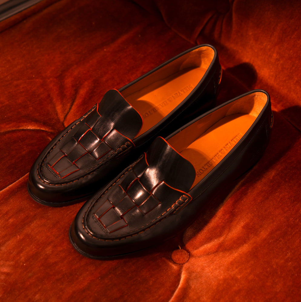 Cuir lisse : essuyez avec un chiffon humide puis laissez sécher. Appliquez une petite quantité de crème nourrissante pour hydrater et nettoyer le cuir ; une fois absorbée, utilisez un cirage pour plus de brillance ou pour raviver la couleur. Utilisez des embauchoirs et alternez vos paires. Évitez les sprays à base d’alcool.