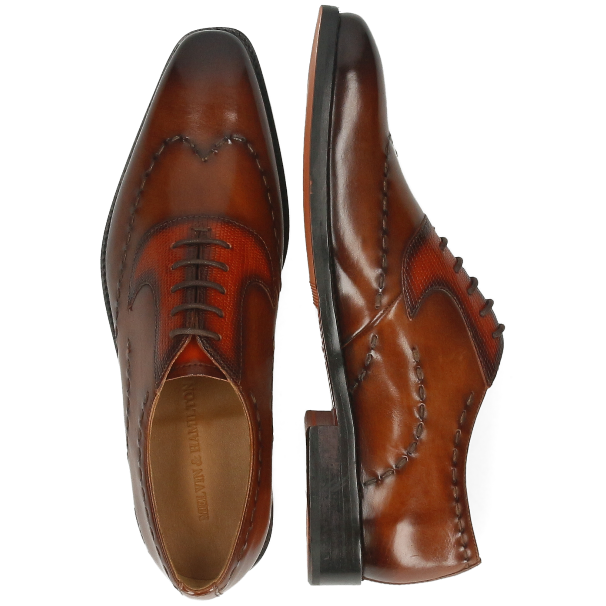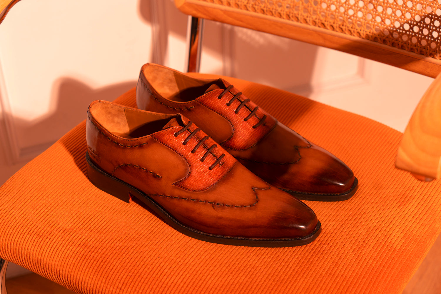 Cuir lisse : essuyez avec un chiffon humide puis laissez sécher. Appliquez une petite quantité de crème nourrissante pour hydrater et nettoyer le cuir ; une fois absorbée, utilisez un cirage pour plus de brillance ou pour raviver la couleur. Utilisez des embauchoirs et alternez vos paires. Évitez les sprays à base d’alcool.