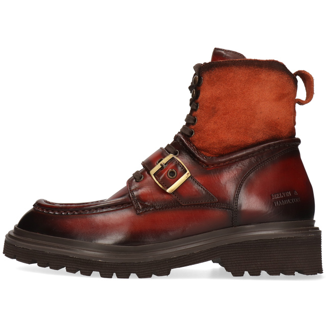 Cuir lisse & cuir suédé : traitez chaque matière séparément. Nettoyez le cuir lisse avec un chiffon humide et appliquez une crème nourrissante ; une fois absorbée, utilisez du cirage si souhaité. Brossez délicatement le cuir suédé ; pour les taches, utilisez une gomme à daim ou une brosse légèrement humide avec du savon doux. Laissez sécher à l’air et utilisez des embauchoirs. Évitez la cire, la graisse et les sprays alcoolisés.