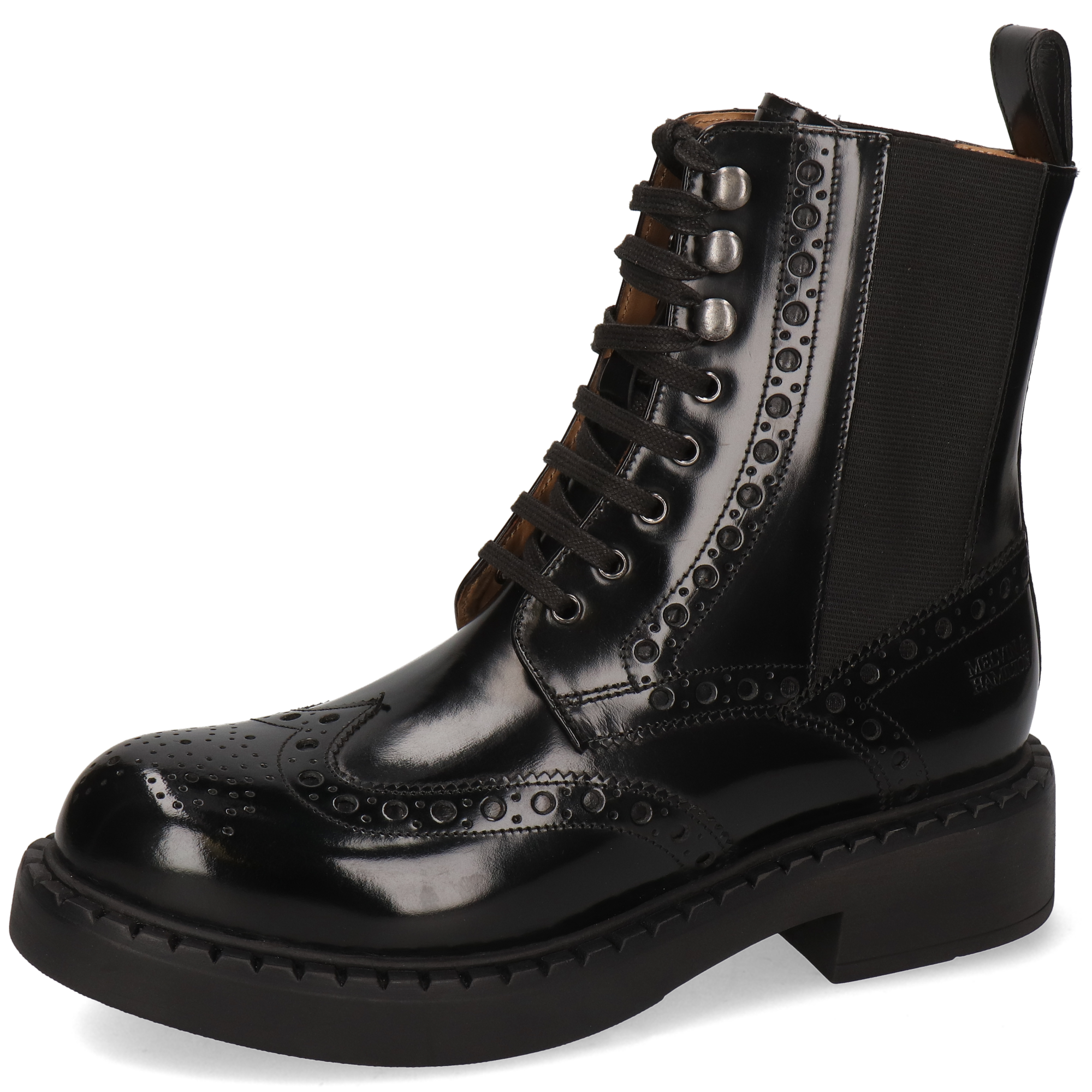 Cuir lisse : essuyez avec un chiffon humide puis laissez sécher. Appliquez une petite quantité de crème nourrissante pour hydrater et nettoyer le cuir ; une fois absorbée, utilisez un cirage pour plus de brillance ou pour raviver la couleur. Utilisez des embauchoirs et alternez vos paires. Évitez les sprays à base d’alcool.